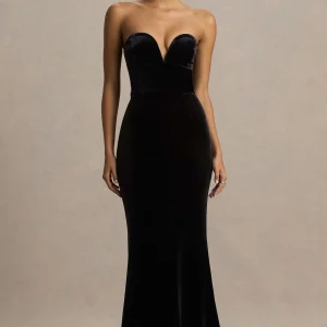 Yolanda | Vestido largo de terciopelo negro con escote corazón