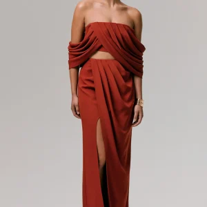 Zelina | Falda larga con detalle drapeado y abertura en color terracota